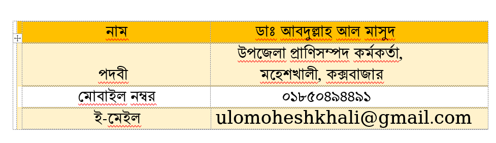 পদবীঃ উপজেলা প্রাণিসম্পদ কর্মকর্তা, মহেশখালী, কক্সবাজার